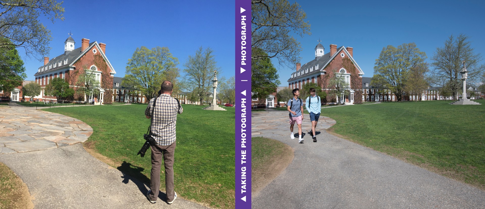 > If your goal is to capture the campus at its best, make sure you photograph in late spring or early fall. If you invite a photographer to campus in early spring the trees will not have leaves and your campus will look sparse and uninviting. In late spring you will run into year-end commitments, exams, and graduation, making it difficult to feature your program, students, and teachers. (That being said, make sure you take graduation photos every year.) I have found one of the best times to photograph your campus is right after school starts in September. Everyone is happy to be there, the campus is spruced up for parents dropping off their kids, and you will run into fewer conflicts.