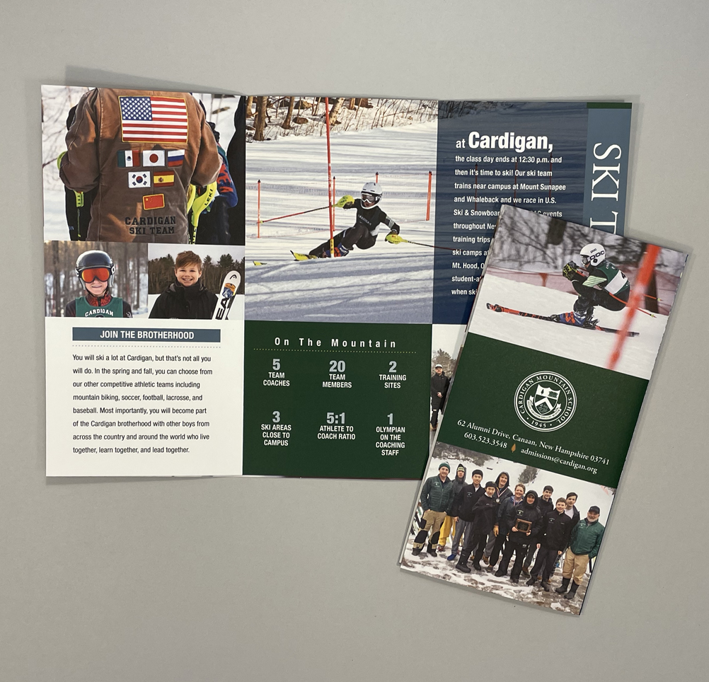 These five brochures feature Cardigan’s signature programs. Packed with information, they are designed to excite the interest of prospective parents and students in the wealth of opportunities Cardigan offers. Each brochure folds out to become a cool poster that can be hung in a bedroom, a unique design that keeps Cardigan top of mind for boys and their families.