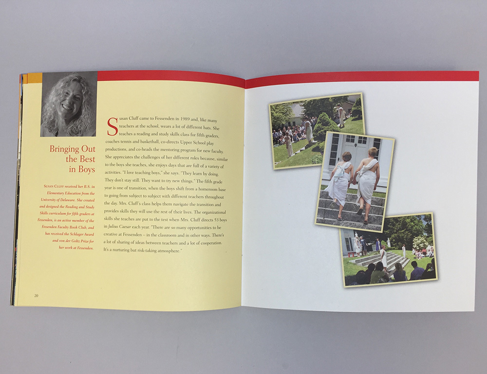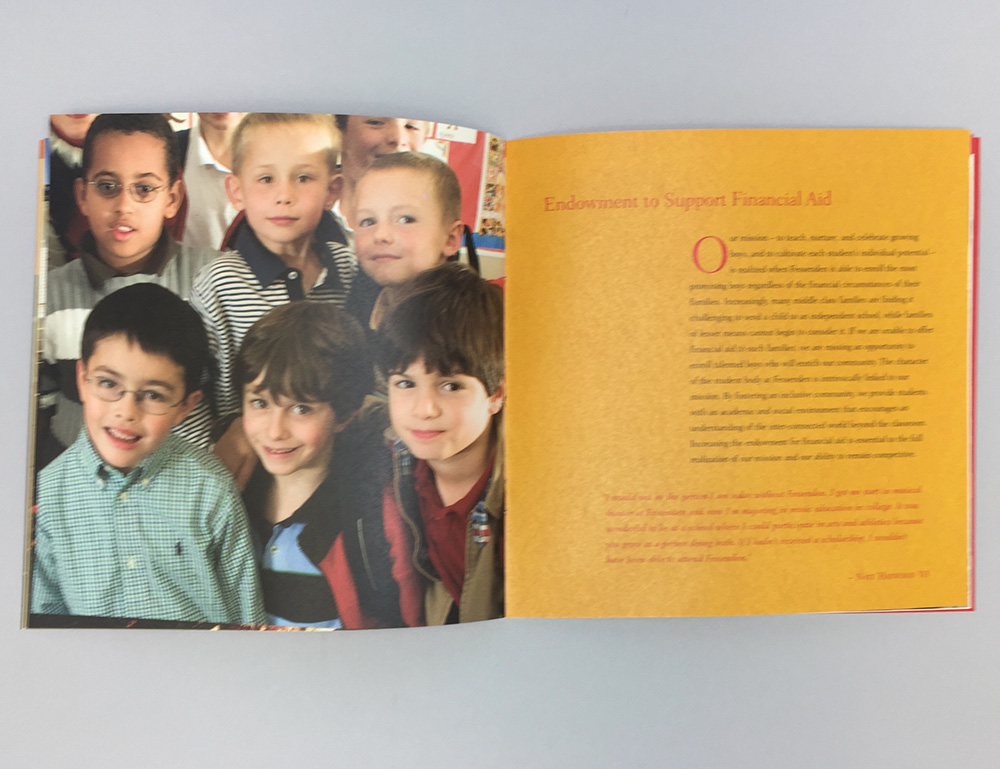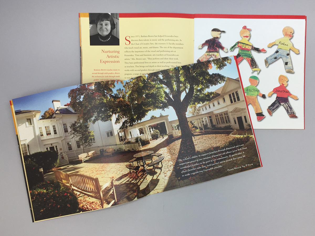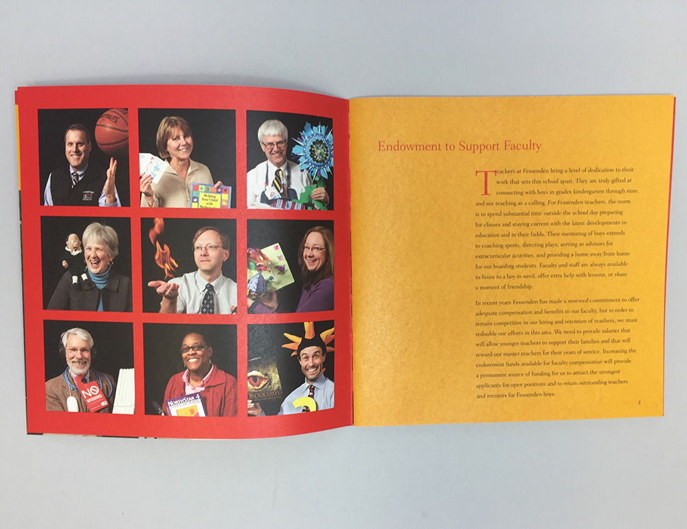 For the Fessenden School’s capital campaign, CEH Design created a case statement focused on the defining themes of this school’s culture, Character and Community. A boys’ school for students in grades PreK-9, Fessenden has pioneered a program in character education across the grades. To support the school’s campaign to raise endowment funds for faculty salaries and scholarship aid, CEH Design created a logo and tagline and produced a print piece that highlights the strength of the faculty through quotes and an in-depth look at exciting classroom projects. Classic but visually dynamic, this piece captures the essence of Fessenden and inspires donors. This was one of the most successful campaigns of the School history.